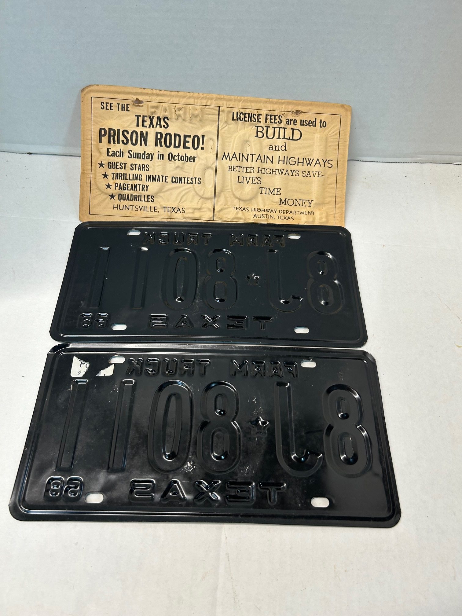 1968 Texas Farm Truck (NOS)-license-plate-set – $300 plus shipping and handling.