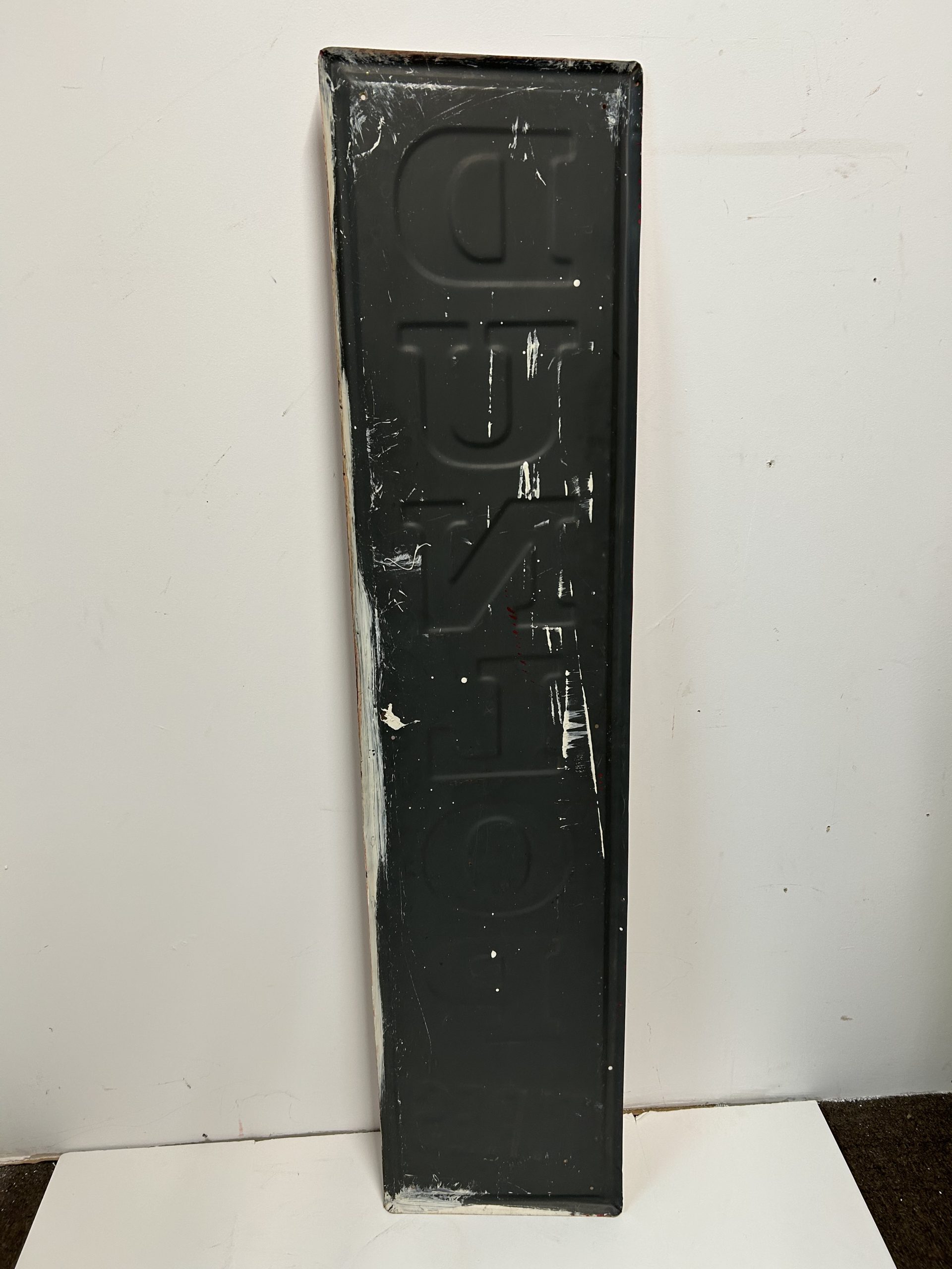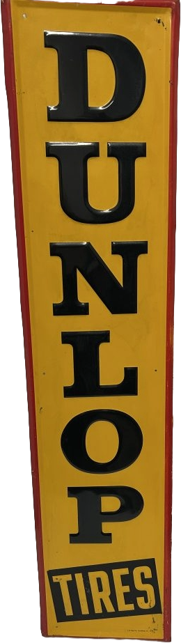 Dunlop Tires painted metal single-sided sign yellow with red outline black lettering